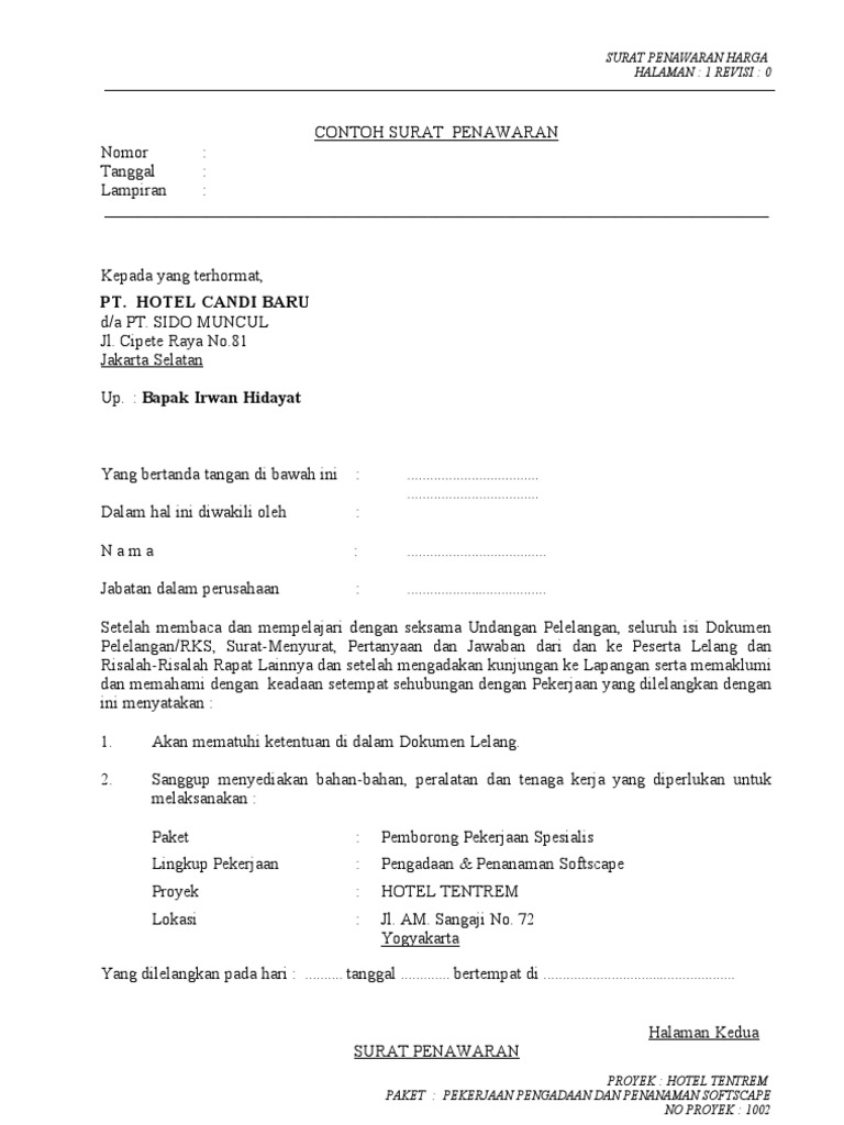 Ini Trik Sederhana Menyusun Dokumen Penawaran Lelang Halaman 1 Kompasiana Com from assets-a1.kompasiana.com Banongan asembagus situbondo adapun klasifikasi penawaran barang sbb : Bapak direktur perusda pada lelang tahun 2012 perkebunan. Apa itu surat penawaran barang? Pt alex sentosa jaya ruko mendrisio, jl. Tak hanya itu saja, suat penawaran harga ini juga bisa digunakan sebagai respon dari surat. Surat penawaran harga adalah surat yang dibuat oleh sebuah instansi untuk keperluan menawarkan harga dari suatu produk yang dibuat atau dipasarkan kepada perusahaan ataupun pihak lain. Dengan begitu, anda bisa pelanggan bisa melihat kesesuaian barang dengan tawaran menarik yang diberikan padanya. Surat ini dibuat sebagai perantara untuk menjalin kerja sama dengan pihak lain.