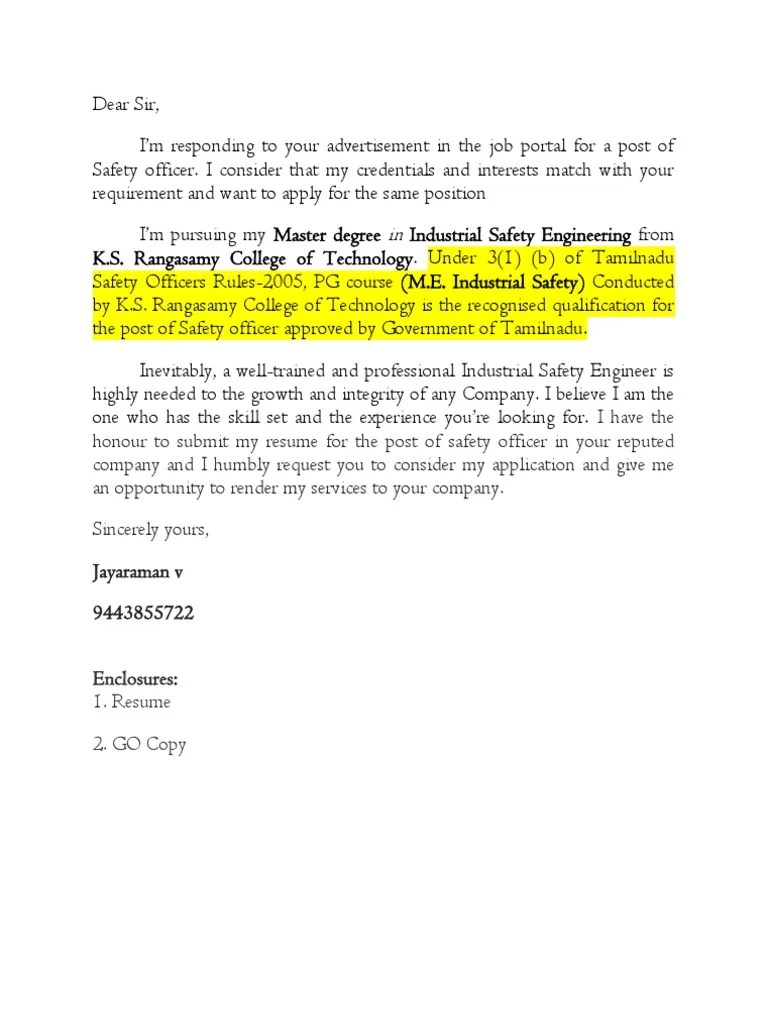 Cover Letter For Safety Officer : Top 5 Safety Officer Cover Letter Samples : When applying for an office manager position, your goal is to convince the hiring manager that you have the required leadership and administrative skills.. Cover letters are your first impression, so make it a good one. A cover letter should always be sent with an application or resume for a job, even if not specifically requested by the company. Starting you letter with "to whom it may concern" immediately gets things off on the wrong foot. A formal cover letter has a very specific purpose and should be written in such a. Wow your future employer with this simple cover letter example format.